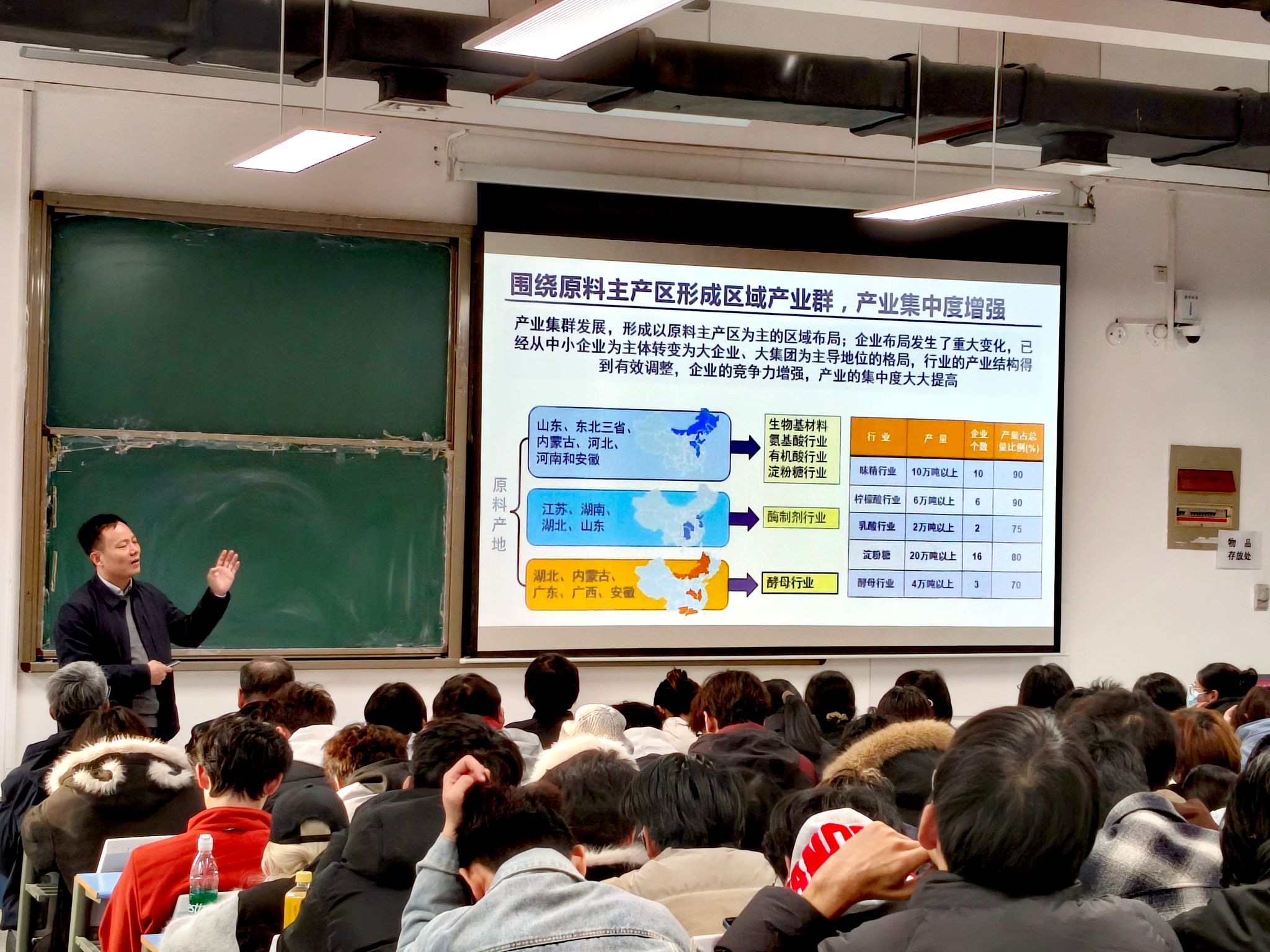孙周通研究员从国家战略与市场需求切入,系统阐述了合成生物学的发展脉络、我国生物制造产业现状及政策支持。报告指出,全球经济和产业格局正在发生深刻变化,合成生物驱动的生物制造为解决全球性危机提供了新的机遇。合成生物学以工程化设计理念推动生物体设计与改造,实现从“认识生命”到“设计生命”的跨越,正成为生物制造与绿色可持续发展的关键引擎。此次讲座拓宽了师生学术视野,增强了科研与产学研合作信心,对学科建设与人才培养具有积极推动意义。他结合天津工业生物技术研究所的科研实践,深入剖析了合成生物学与生物工程专业的学科融合路径及发展前景。讲座内容深入浅出,案例生动,现场互动热烈,掌声不断。