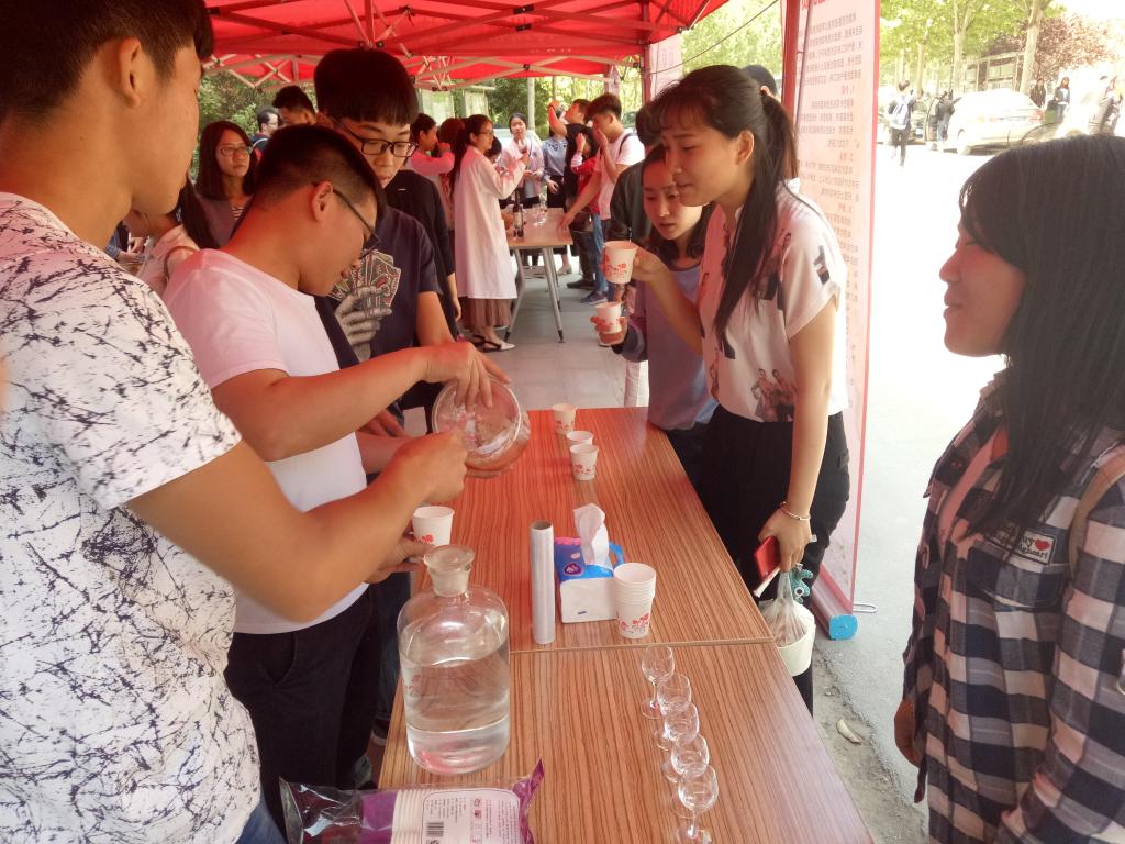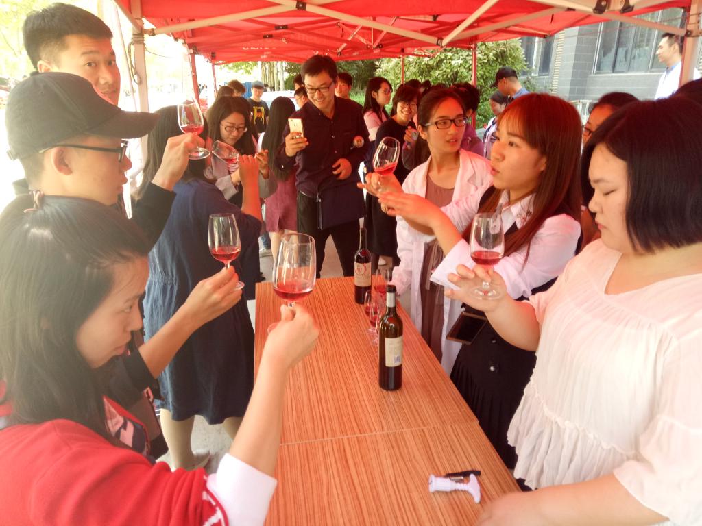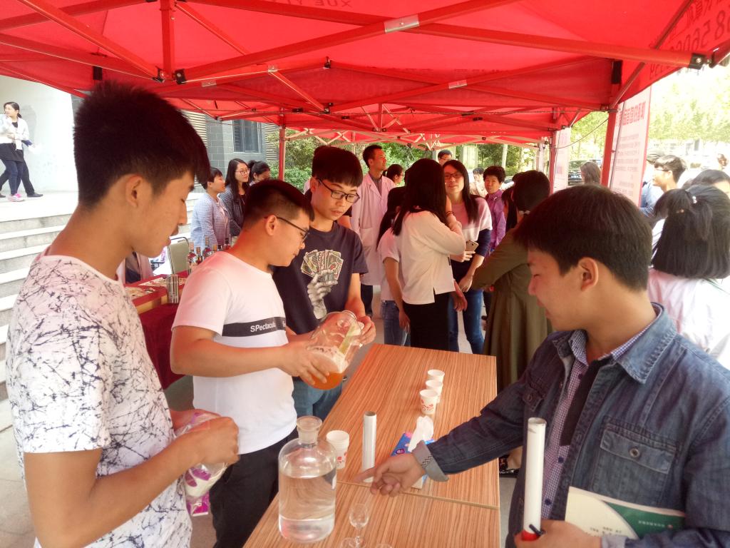 酒逢知己饮,诗向会人吟。4月28日中午,生物工程学院在龙子湖校区生工组团北门举办酒类展示品鉴会,将来自世界各地品类多样、经典独特的酒品展示在全校师生面前,并邀请大家品尝我院自酿美酒。