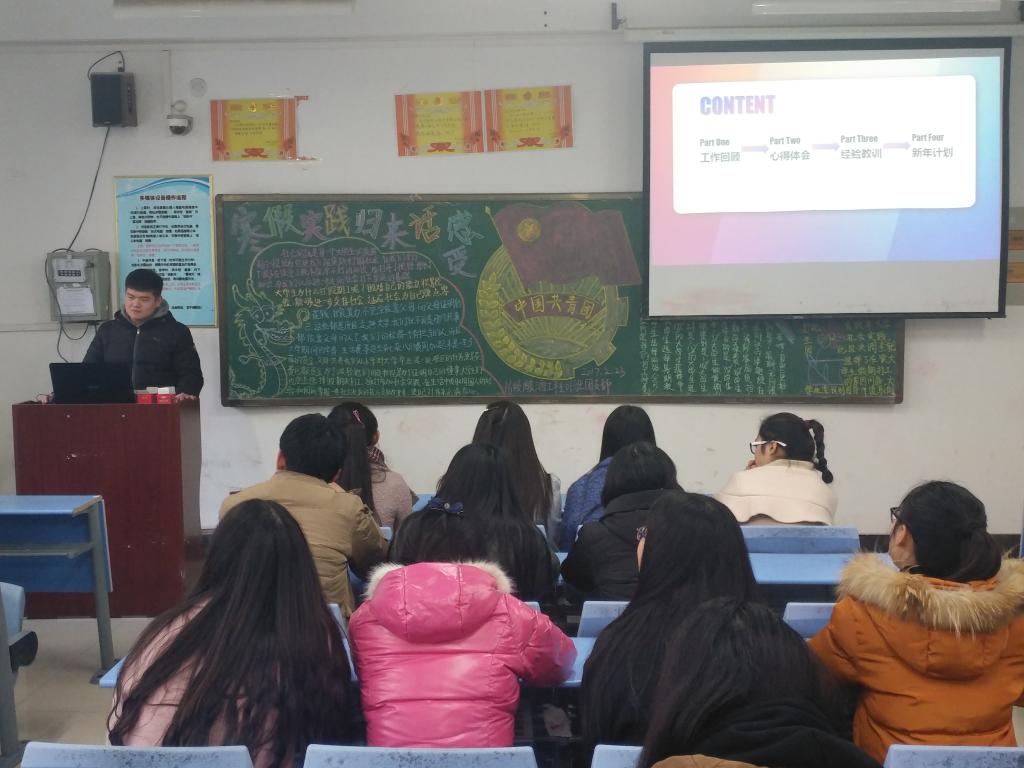 九层之台,起于累土;千里之行,始于足下。实践是当代大学生必须经历的路程,天下之事,闻者不如见者知之为详,见者不如居者知之为尽。新学期的到来,为了培养大学生坚定的意志和坚持不懈的精神,加强同学们对社会实践重要意义的认识,生物工程学院开展了以“寒假实践归来话感受”为主题的团课活动。
